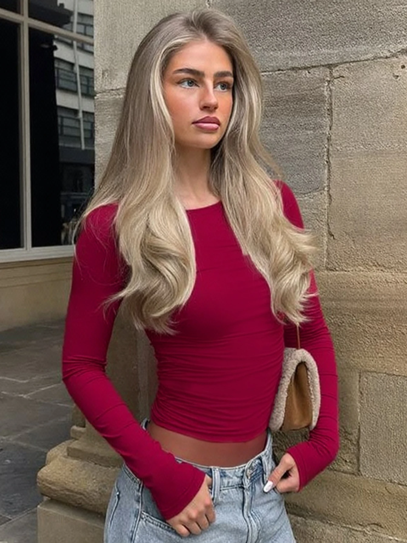 Dulzura O-Neck Long Sleeve Ruched Slim Fit T-Shirt