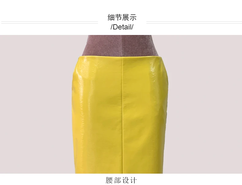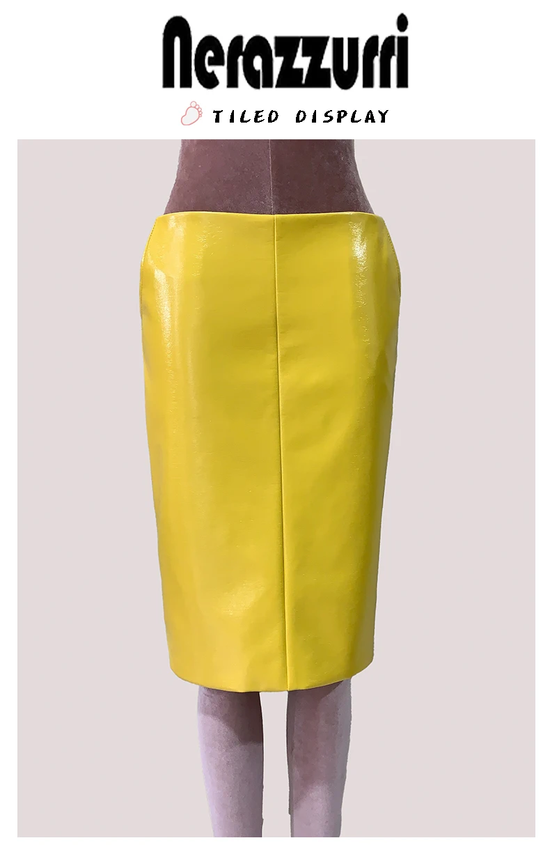Mauroic Shiny Reflective Bright Yellow Faux Leather Pencil Skirt