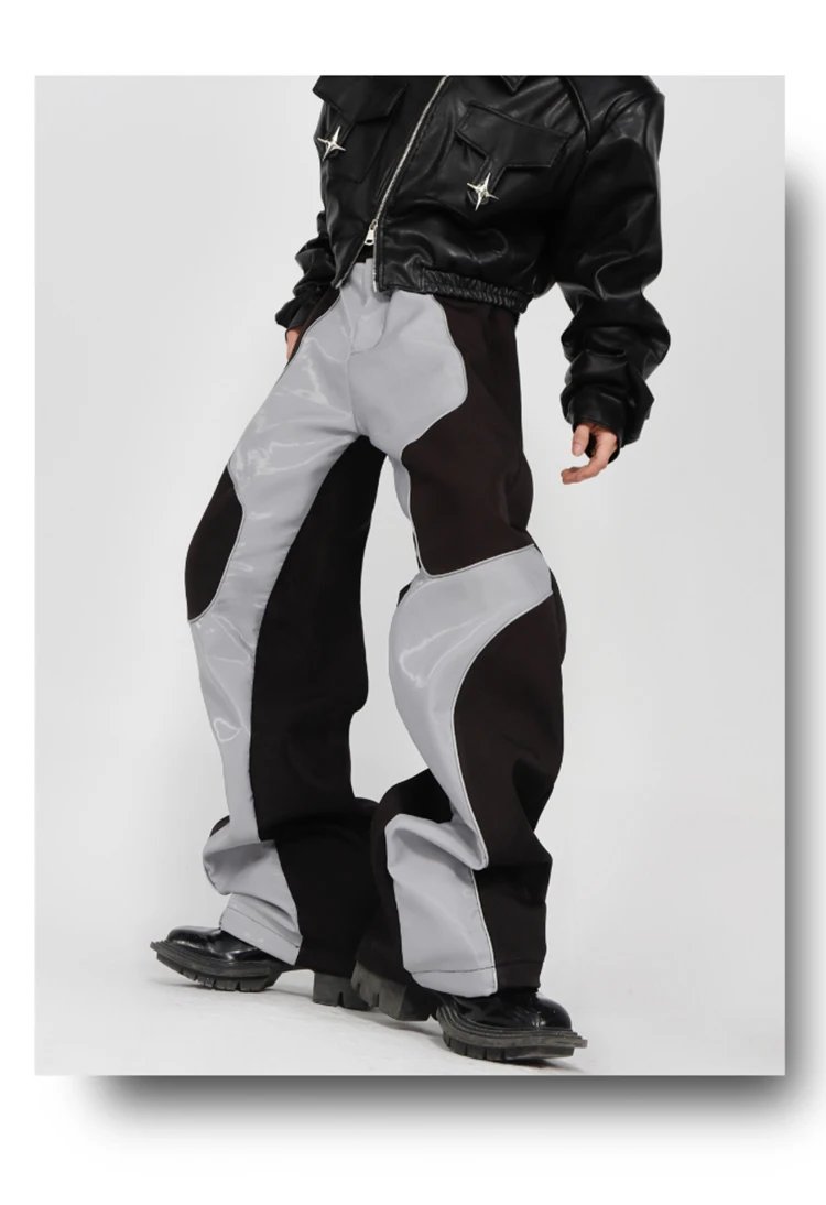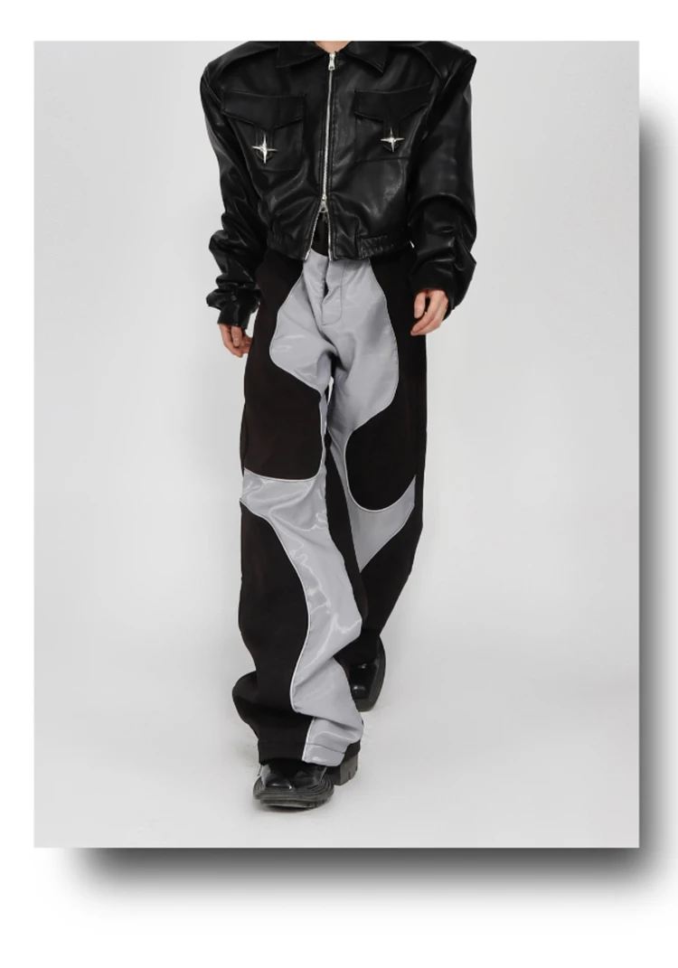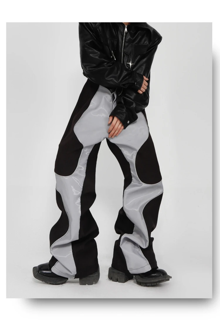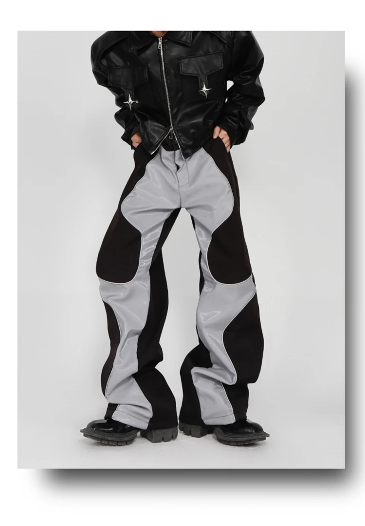 Mauroicardi Long Loose Casual Patchwork Pu Leather Pants