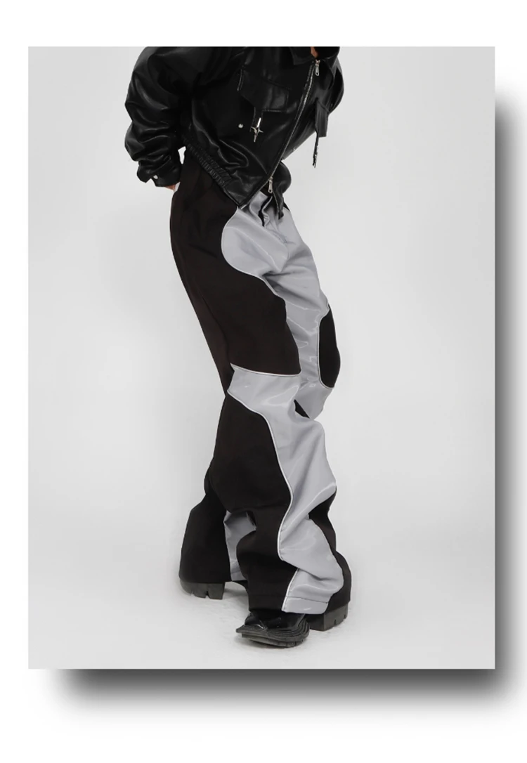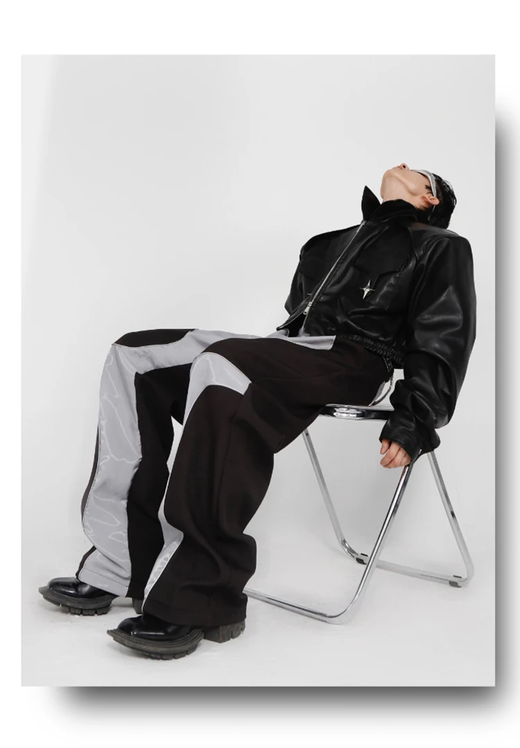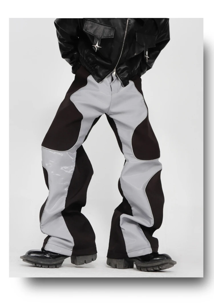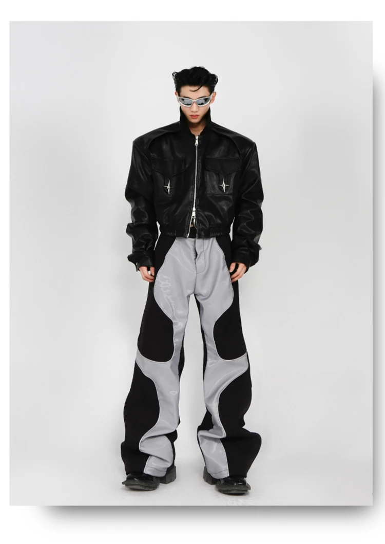 Mauroicardi Long Loose Casual Patchwork Pu Leather Pants