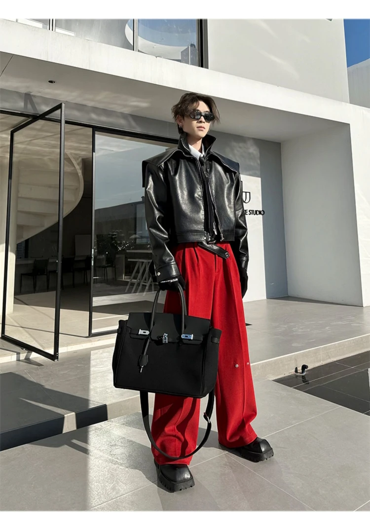 Mauroicardi Spring Autumn Faux Leather Jacket