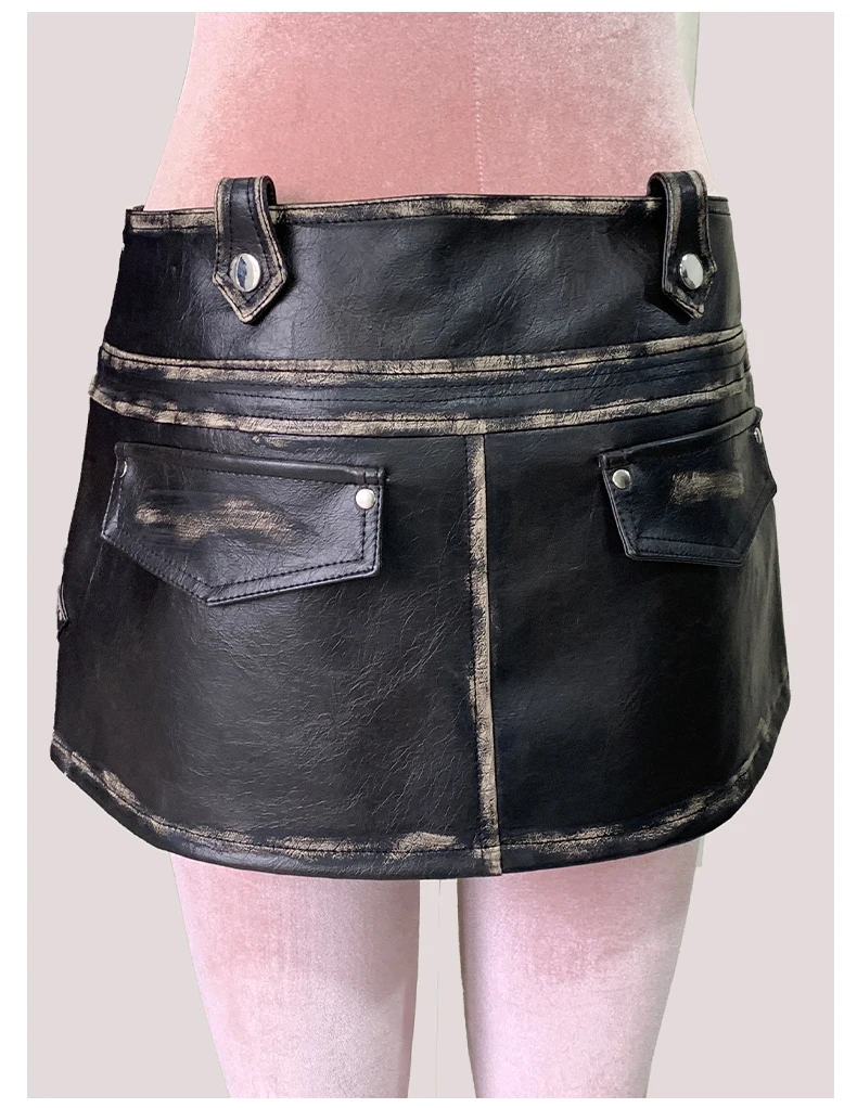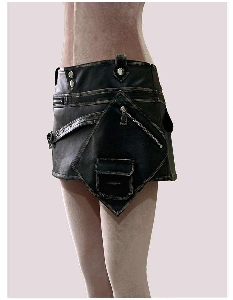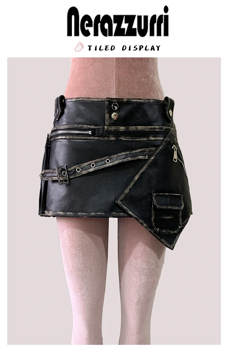 Mauroicardi Distressed Black Pu Leather Mini Asymmetrical Skirt