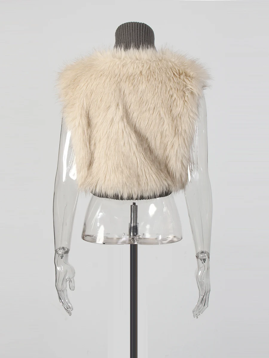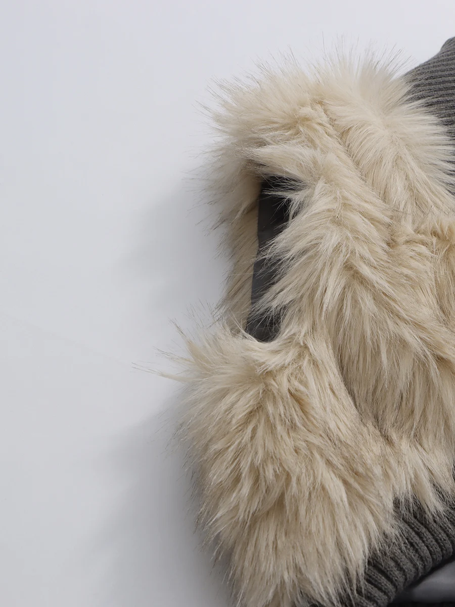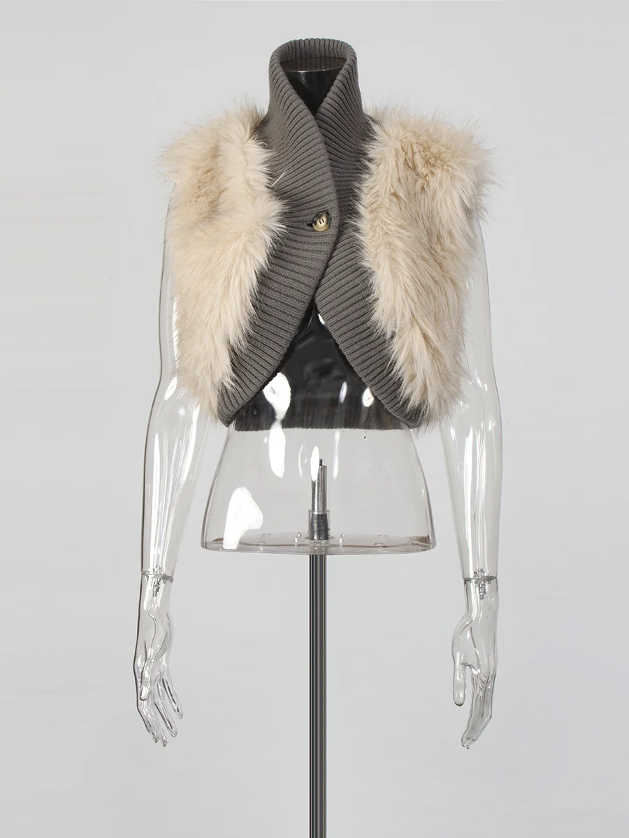 TWOTWINSTYLE V Neck Sleeveless Patchwork Fur Top