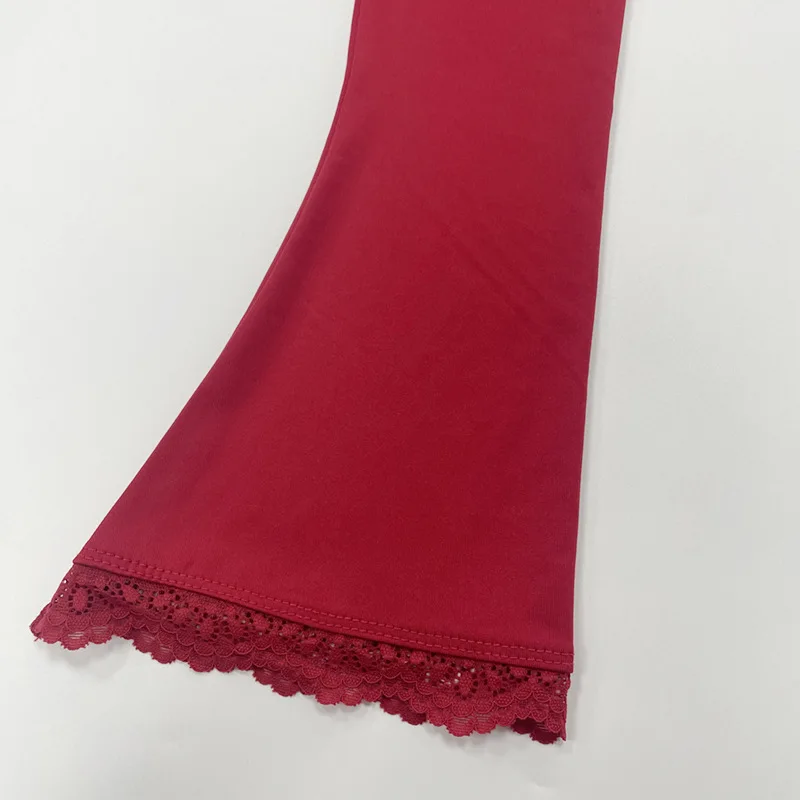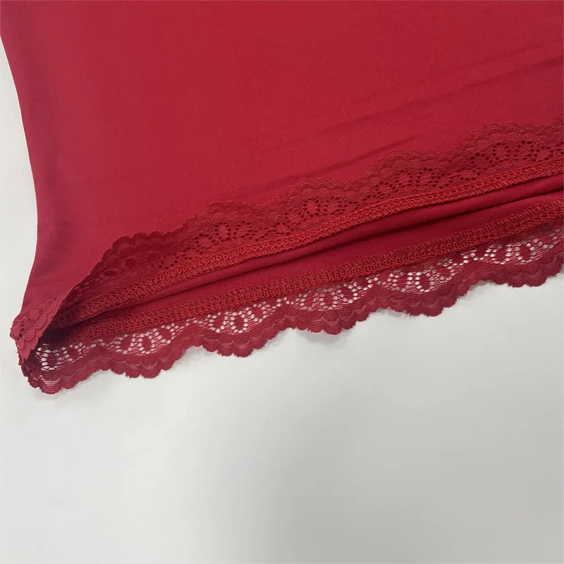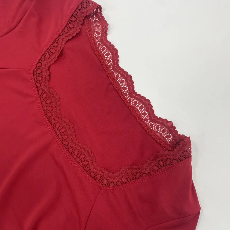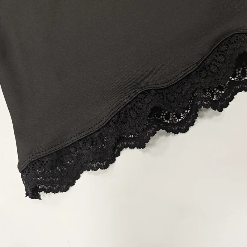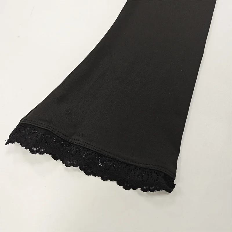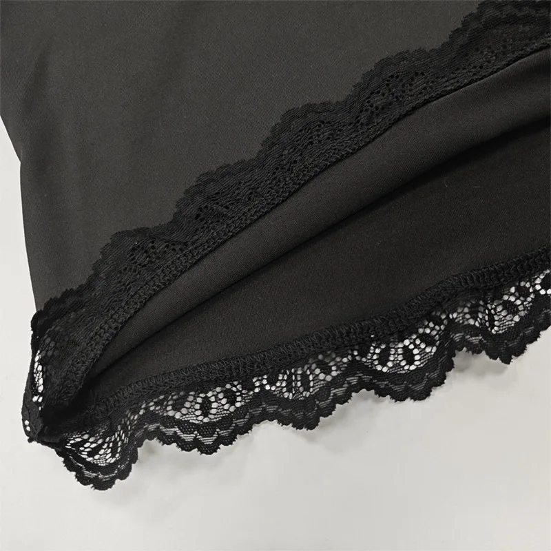 Women's Casual Solid Color Slim Fit Long Sleeve T-Shirt Lace Patchwork Slightly Flared U-Neck Crop Top Sreetwear Spring/Fall